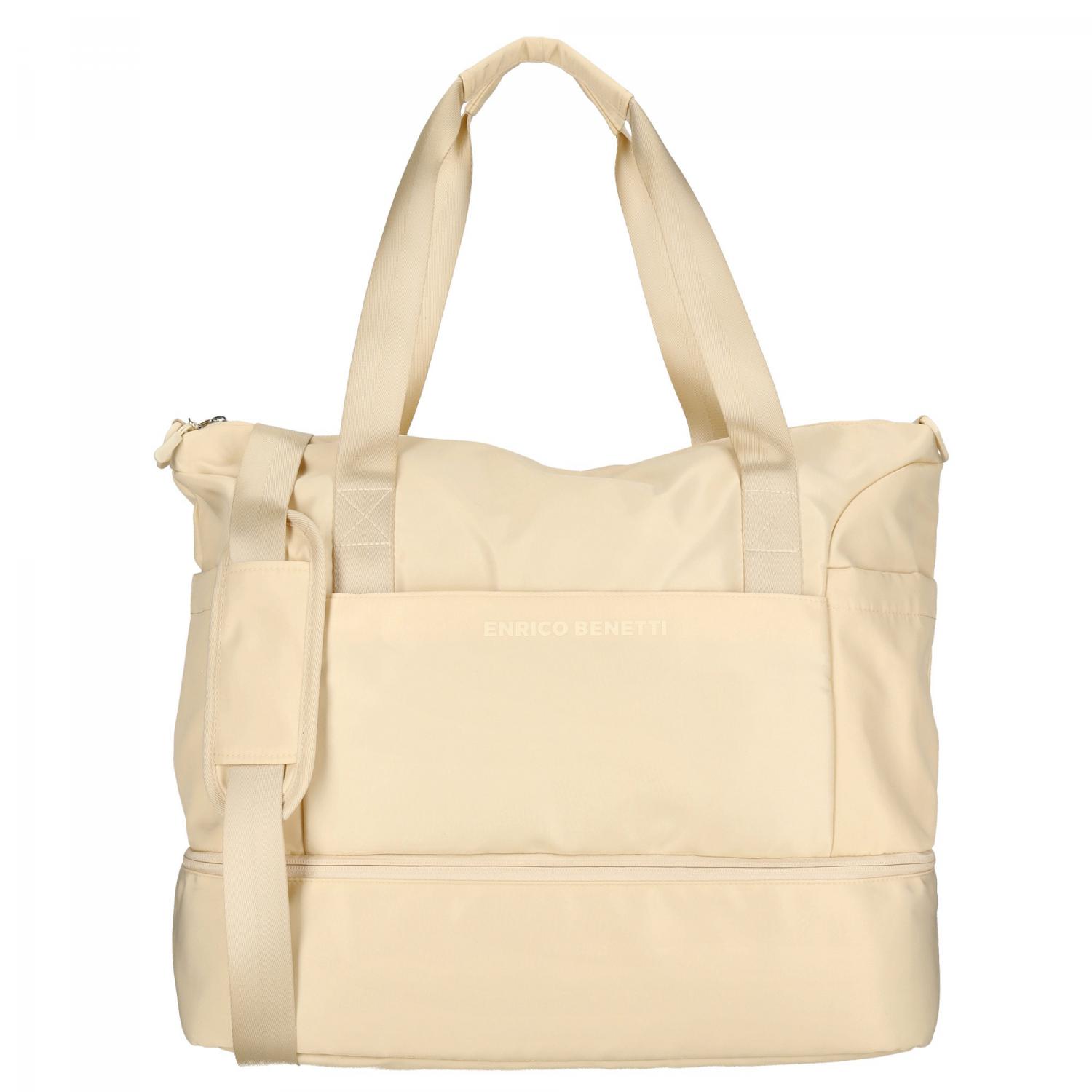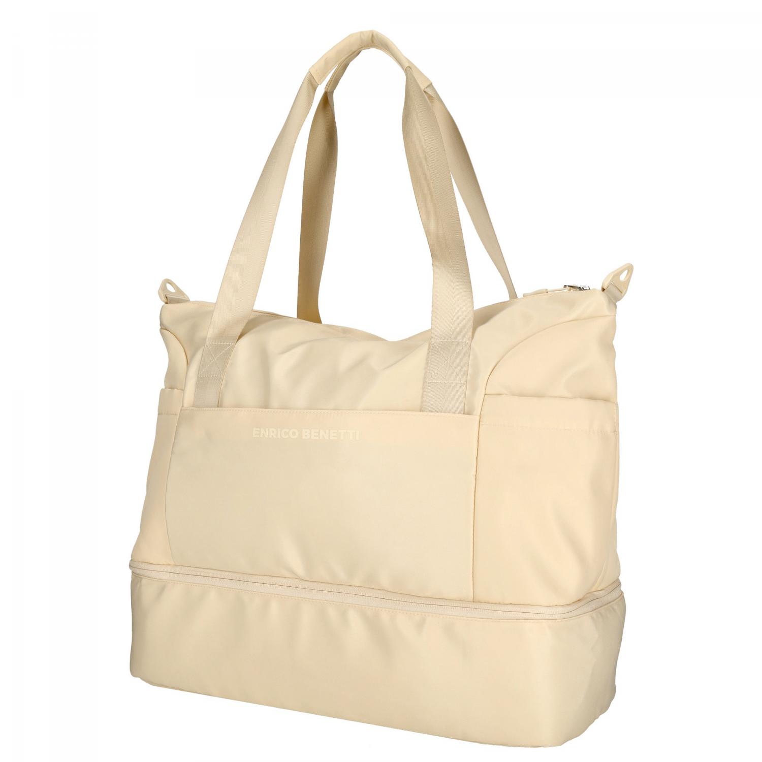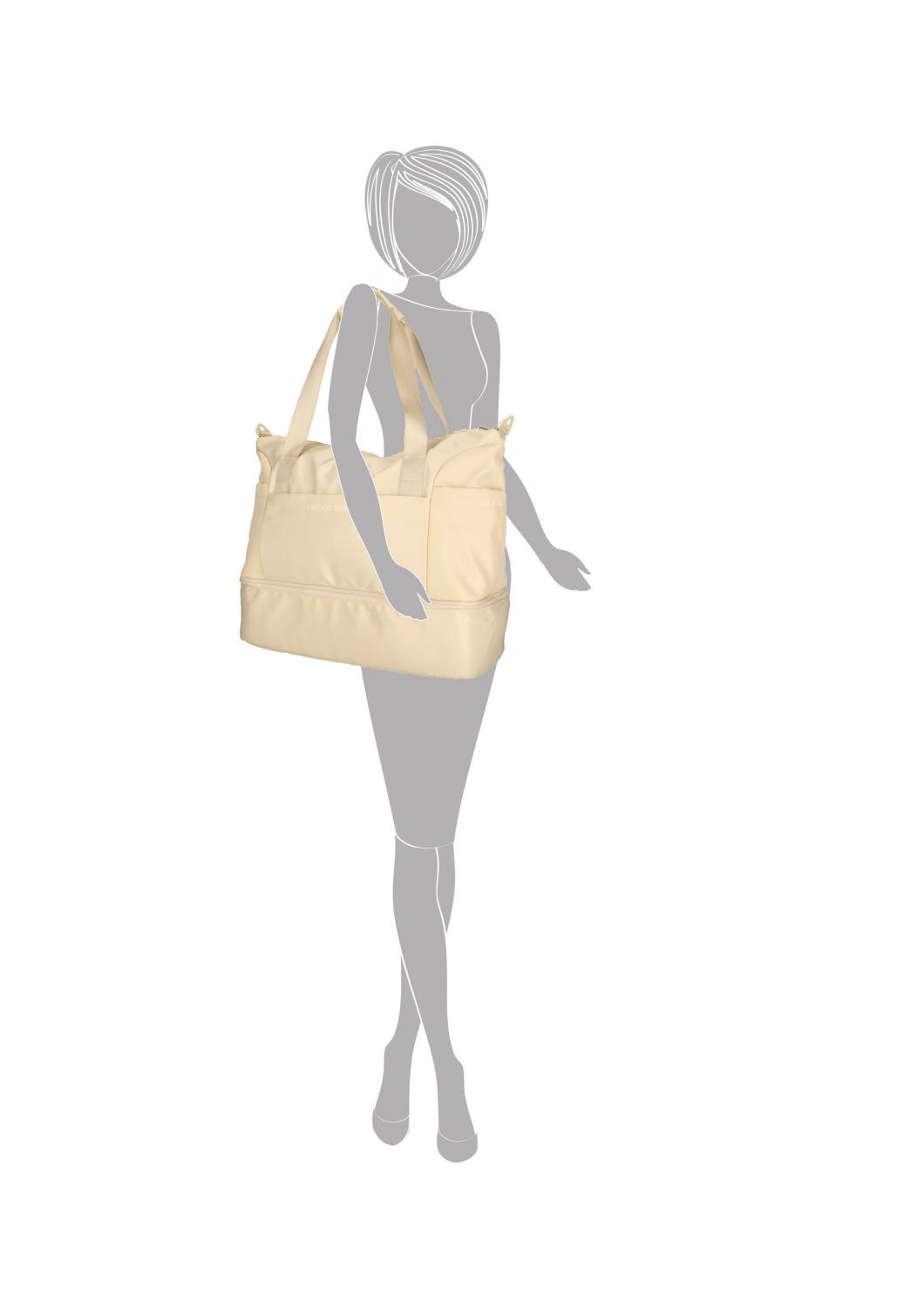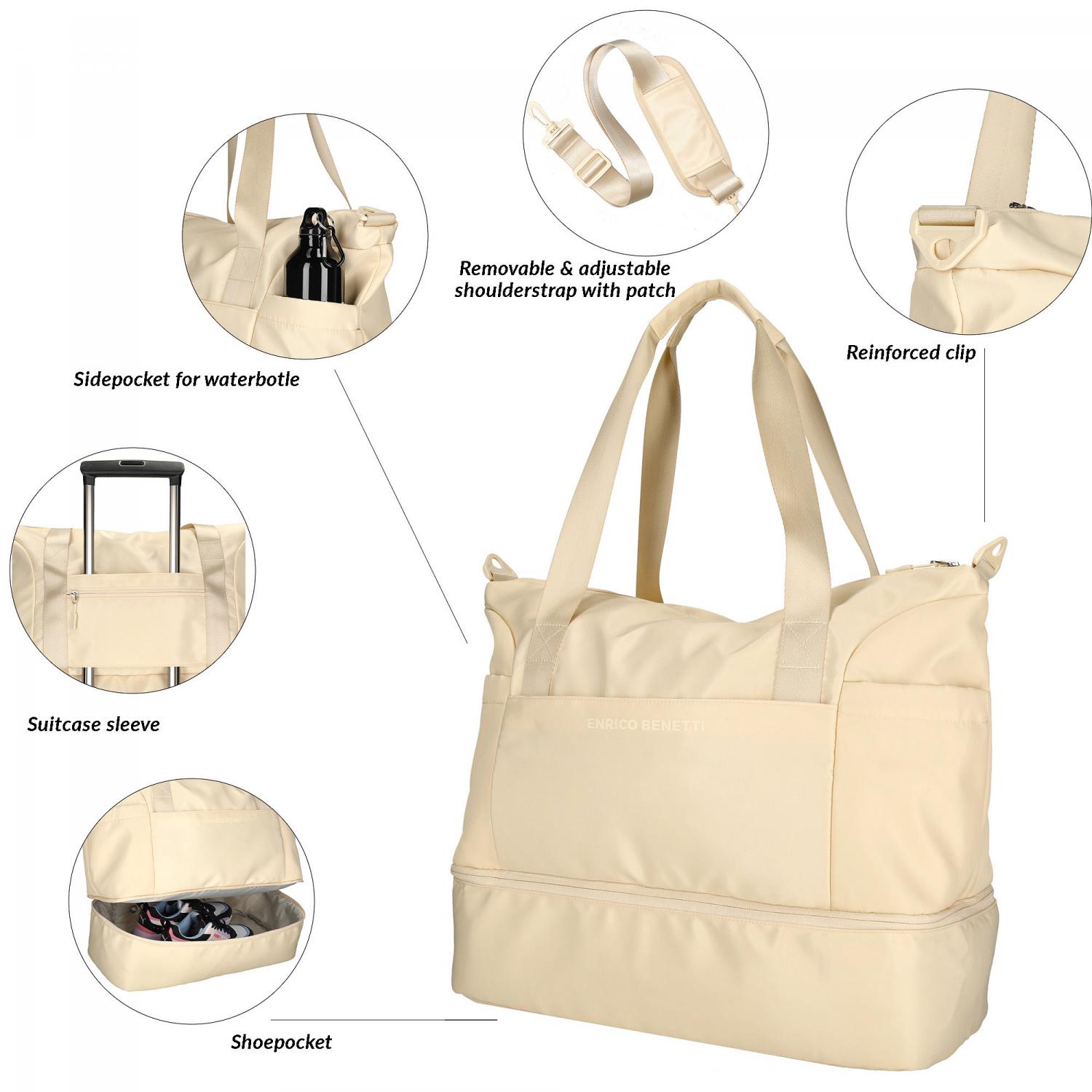 Dámská sportovní taška Enrico Benetti z kolekce Lakers spojuje moderní eleganci s maximální funkčností. Díky velkorysému objemu a chytrému členění poskytuje dostatek prostoru nejen pro sportovní vybavení, ale i pro víkendové cestování či každodenní využití. Jemné světle béžové provedení dodává tašce univerzální a elegantní vzhled, který se snadno kombinuje s jakýmkoliv outfitem.