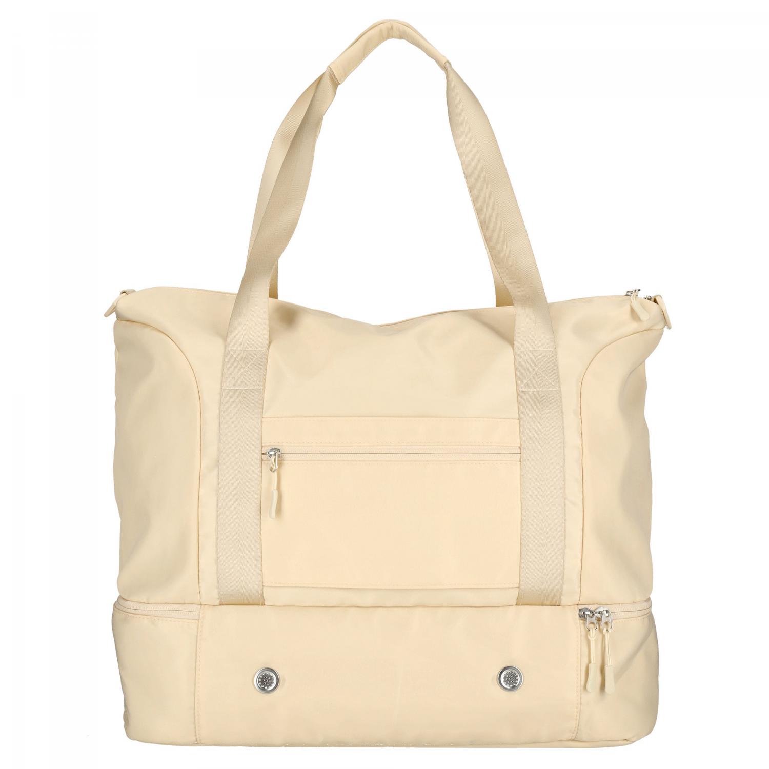 Taška je prakticky rozdělena na dvě samostatné části, což umožňuje přehlednou organizaci obsahu a oddělení čistých a použitých věcí.