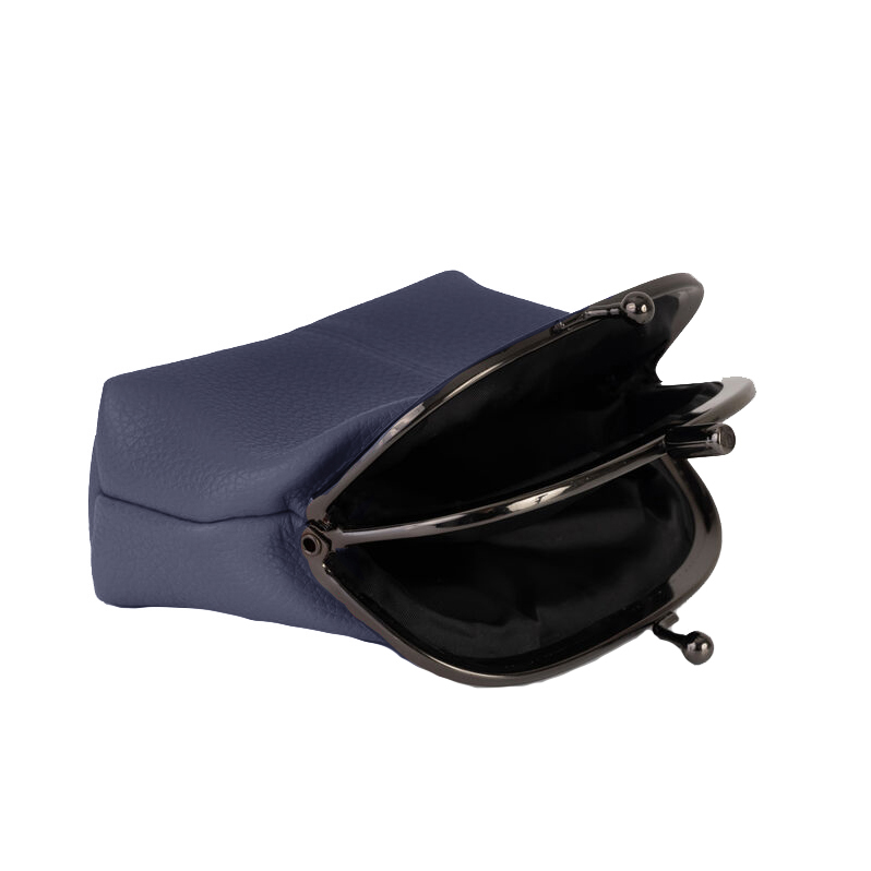 Elegantní dámská etue v tmavě modrém provedení je praktickým doplňkem pro každodenní použití. Díky dvěma samostatným kapsám nabízí přehledné uložení mincí, klíčů nebo jiných drobných předmětů. Kvalitní antracitový kovový rámeček zajišťuje pevné uzavření a dlouhou životnost.