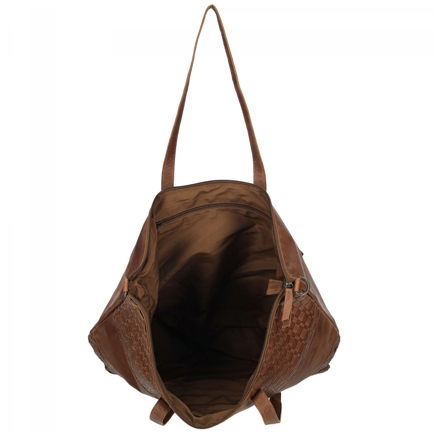 Proplétaná velká kožená shopper kabelka Sicily 89033-005 hnědá cognac, ENRICO BENETTI
