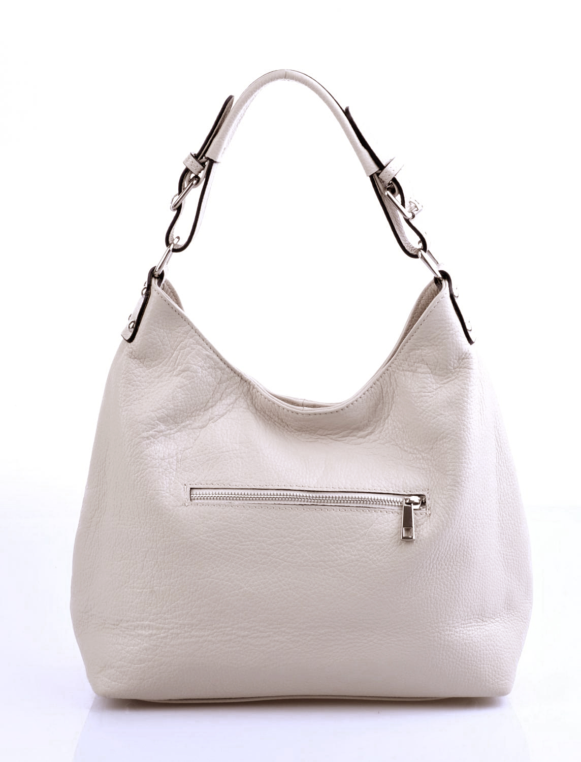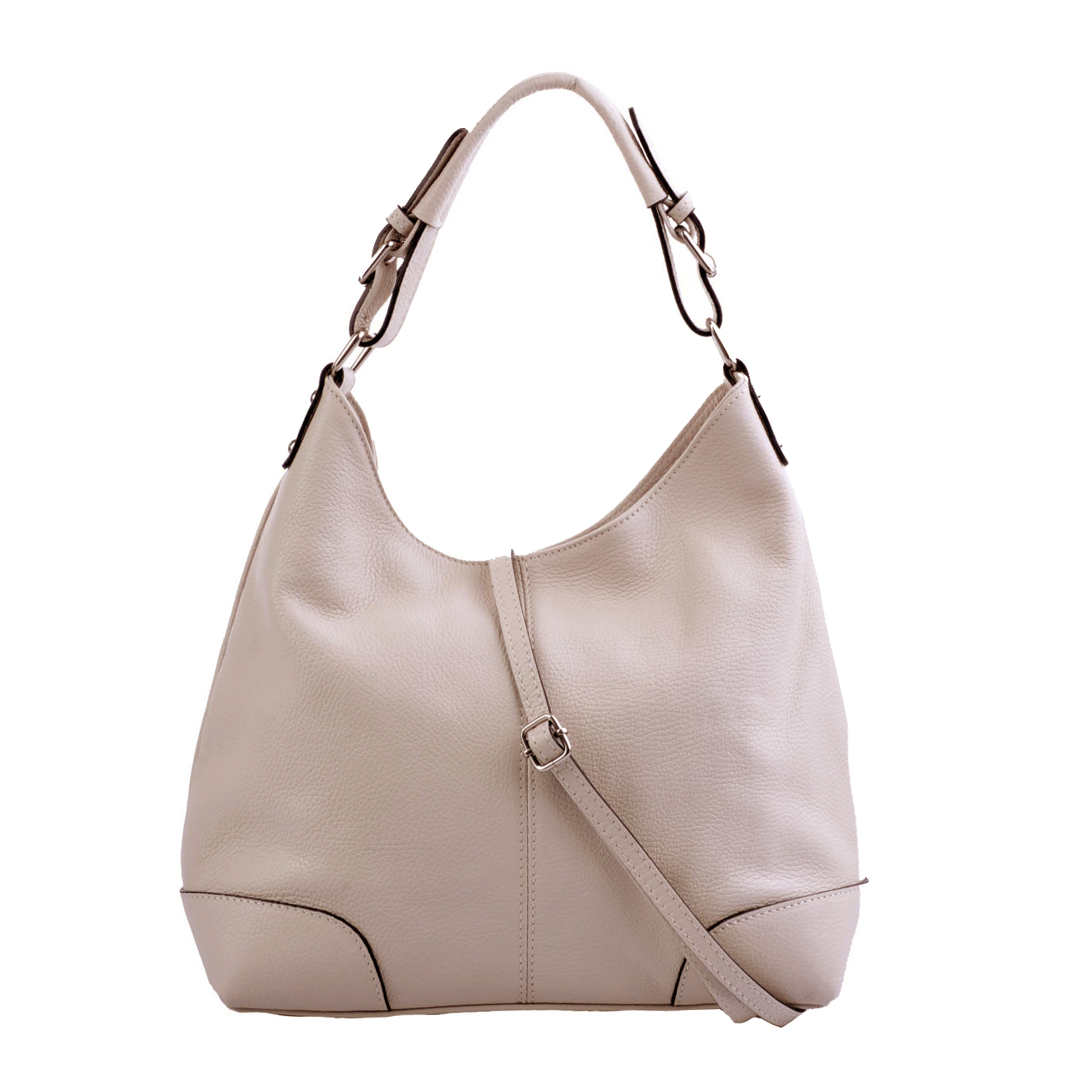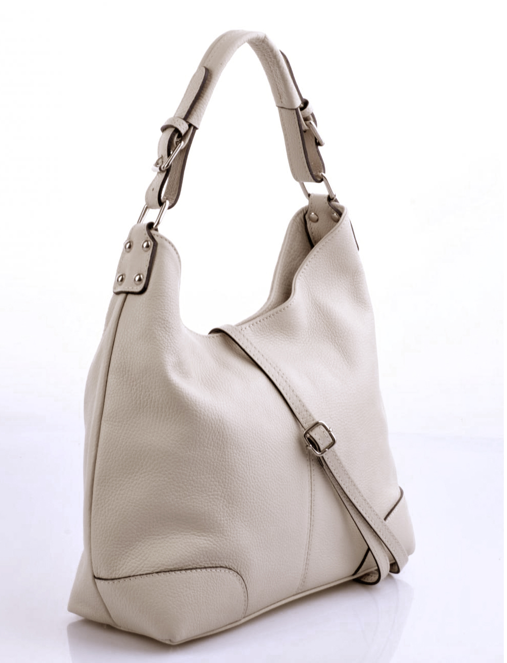 Elegantní kožená kabelka z Itálie vyrobená z příjemné kůže, která je odolná proti poškrábání. Kabelka má jednu kapsu na zip, uvnitř je dělená na dvě přihrádky.