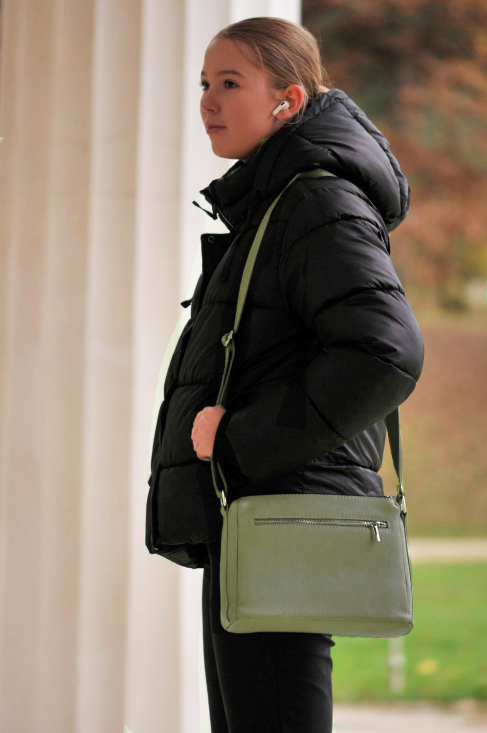 Stylová kabelka v olivově zeleném odstínu je ideální volbou pro každodenní nošení. Spojuje moderní design, praktičnost a kvalitní zpracování z pravé kůže.