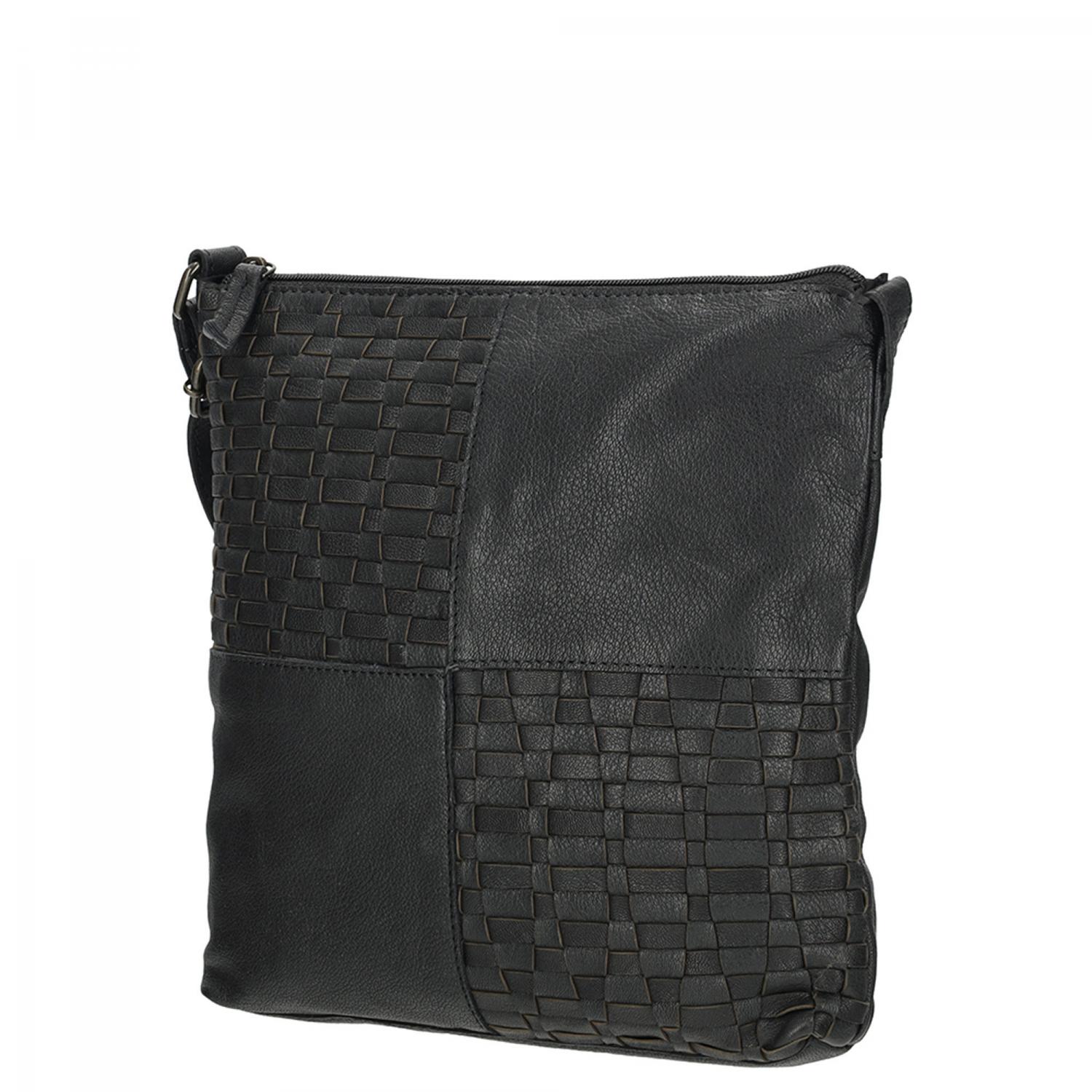 Černá proplétaná kožená crossbody kabelka Enrico Benetti