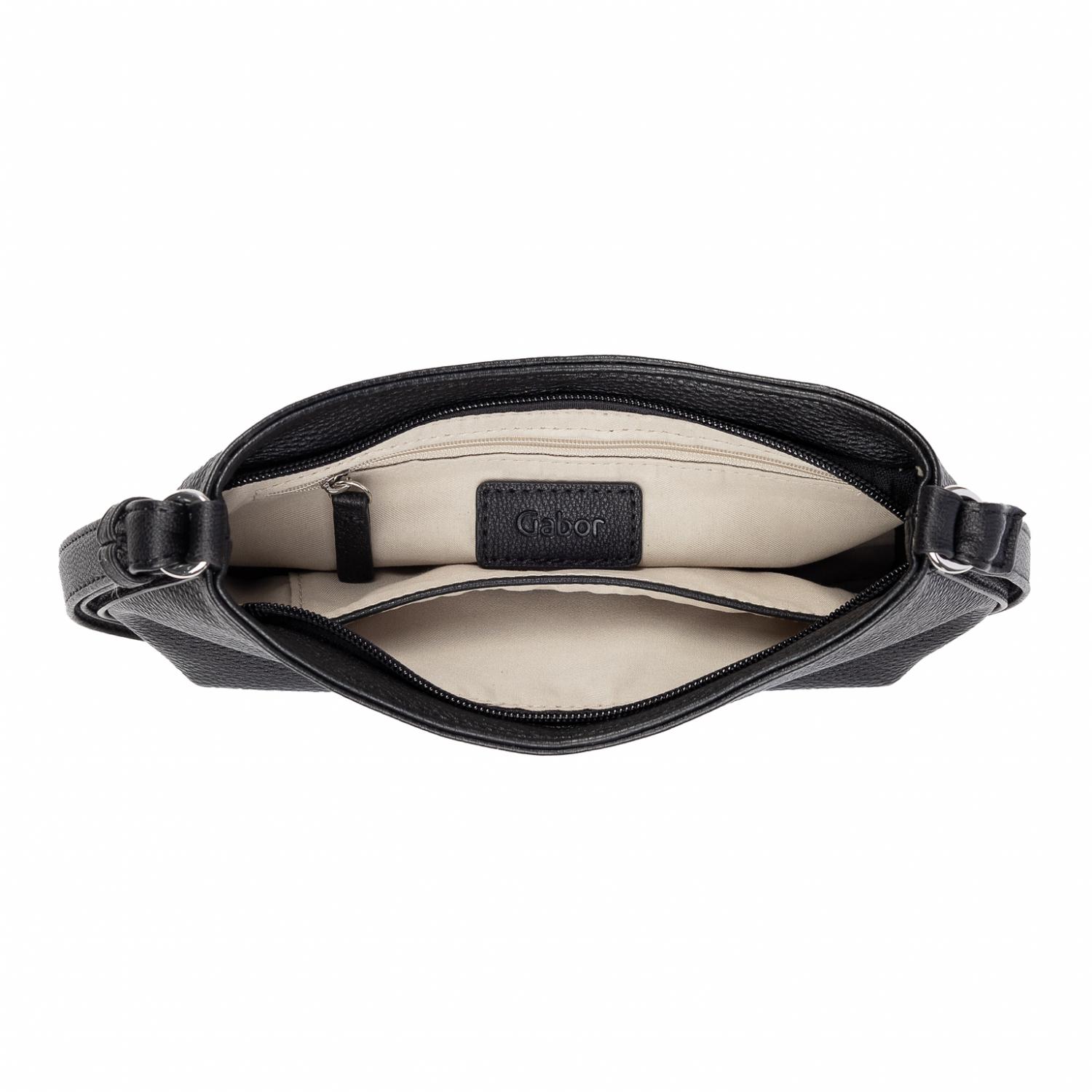 Hlavní přihrádka se uzavírá zipem a nabízí praktické členění – jedno otevřené a jedno uzavíratelné kapsičkou na zip. Na zadní straně kabelky se nachází další kapsa na zip pro drobnosti, které chcete mít po ruce. Decentní logo Gabor na přední straně podtrhuje elegantní vzhled kabelky.
