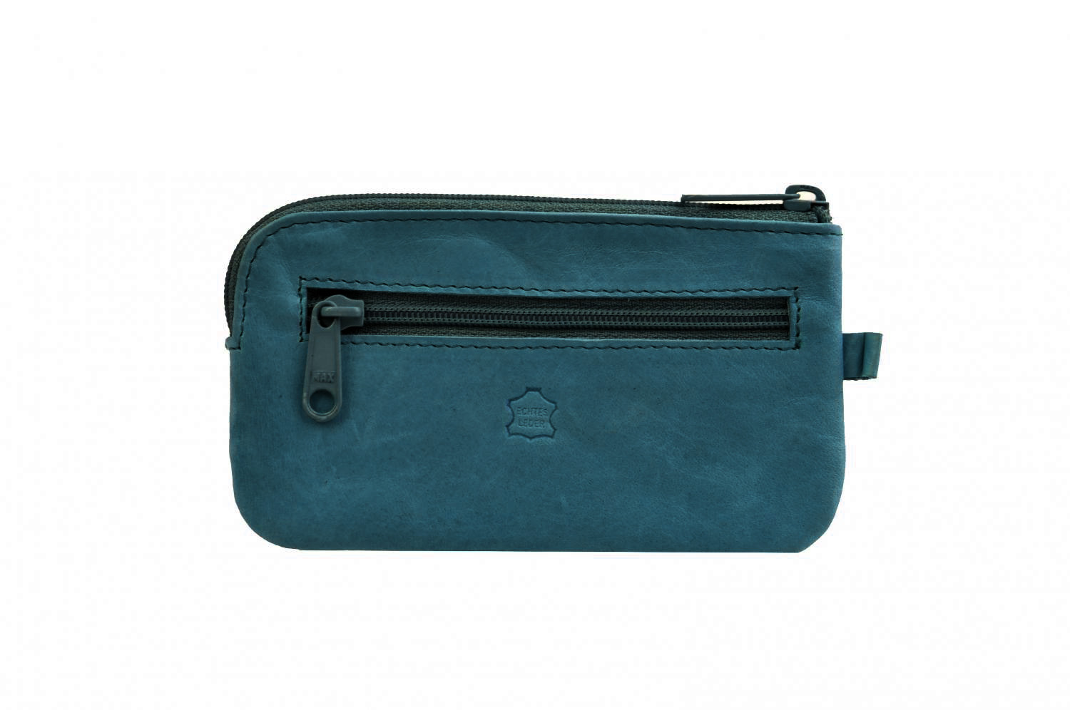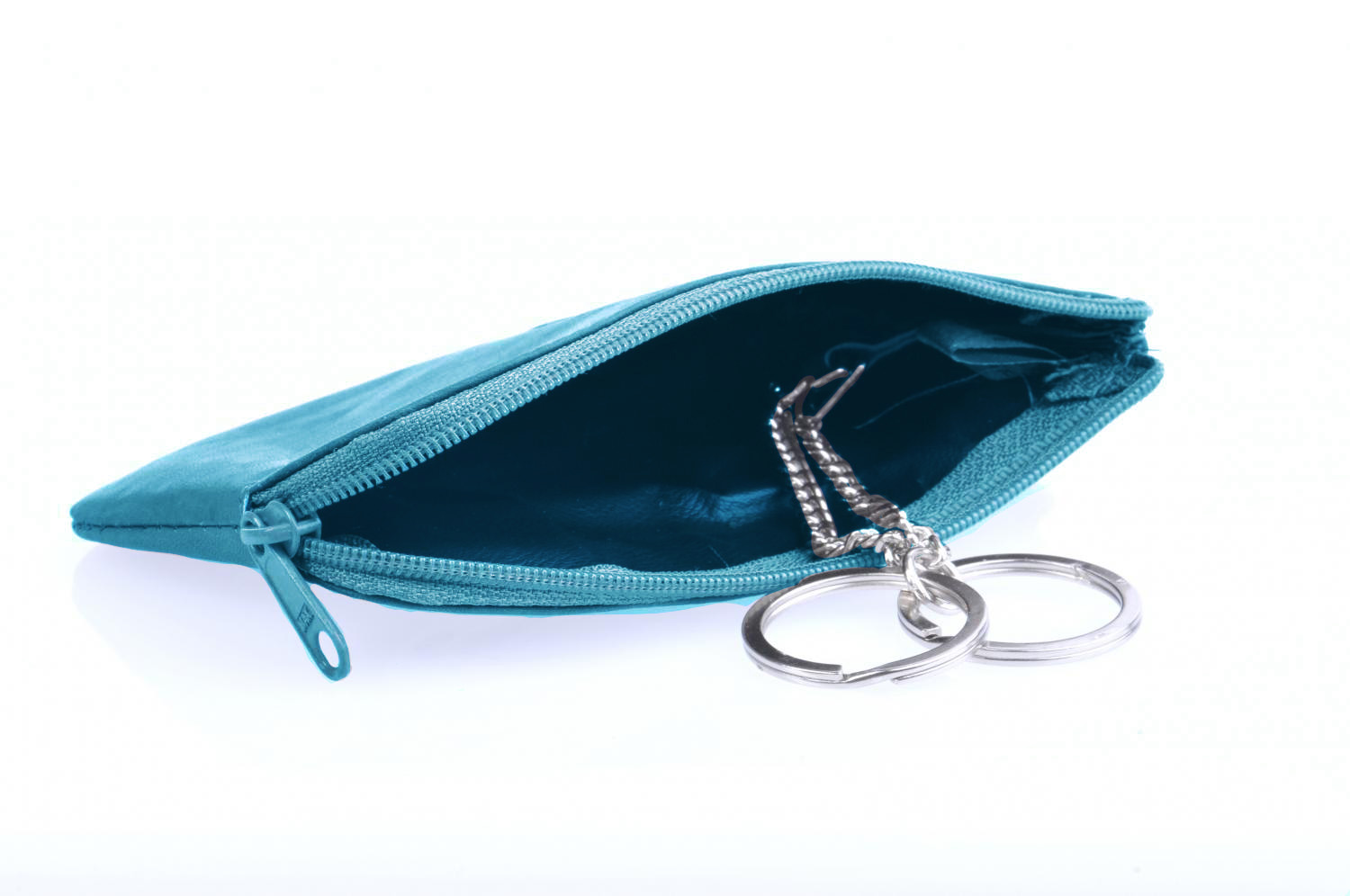 Dámská velká kožená klíčenka 1039-A tyrkysová s kytičkou, HJP