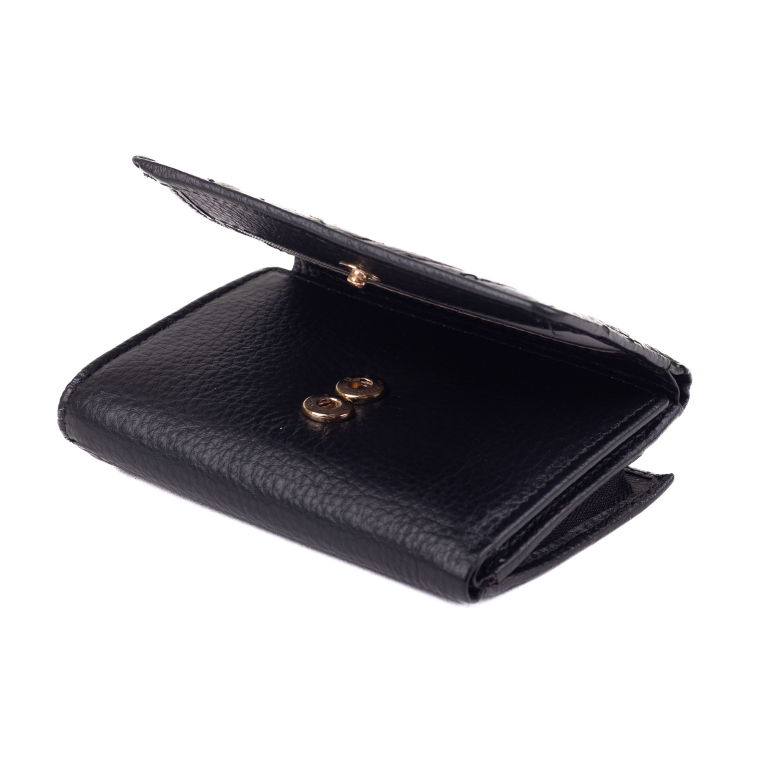 • Hlavní část peněženky je uzavíratelná pomocí dvou kovových druků, takže si můžete vybrat, který použijete v závislosti na obsahu.