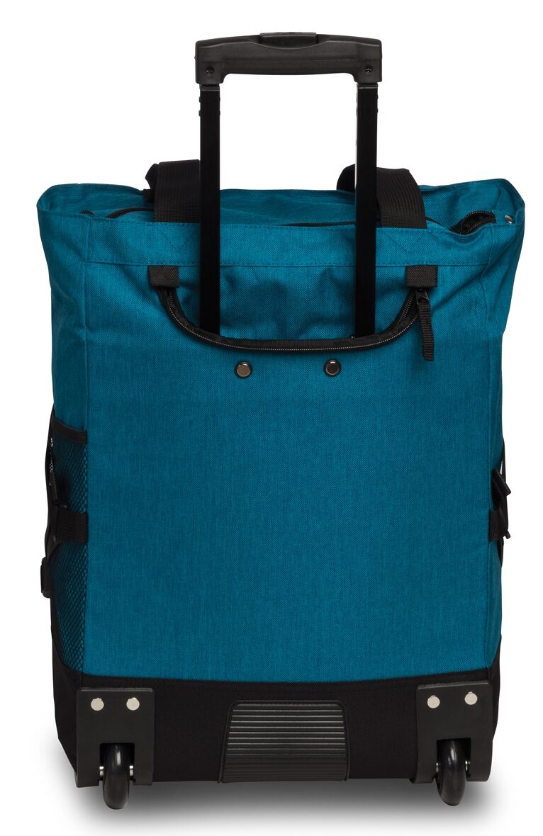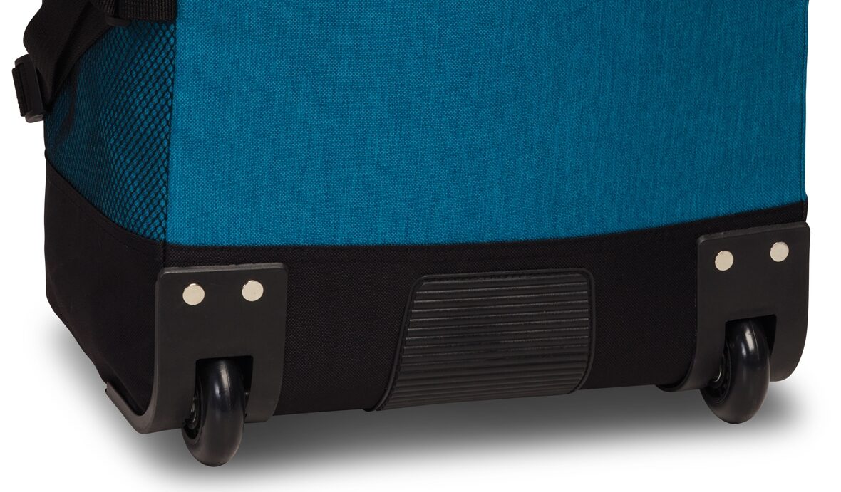 Taška na kolečkách stojí díky stabilnímu spodku jak prázdná tak plná. Inline kolečka umožňují jednoduchý pohyb na jakémkoli povrchu. Tašku je možné pověsit i přes rameno - ideální na schodech.
