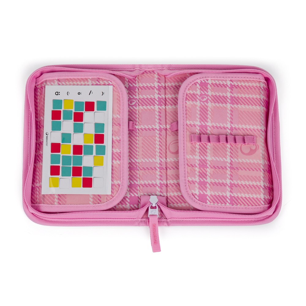 • K pouzdru přibalíme tabulku pro rozvrh hodin a set samolepek, kterými si děti mohou kreativně vylepit celý školní týden. Například hodinu matiky si označí symbolem pravítka.