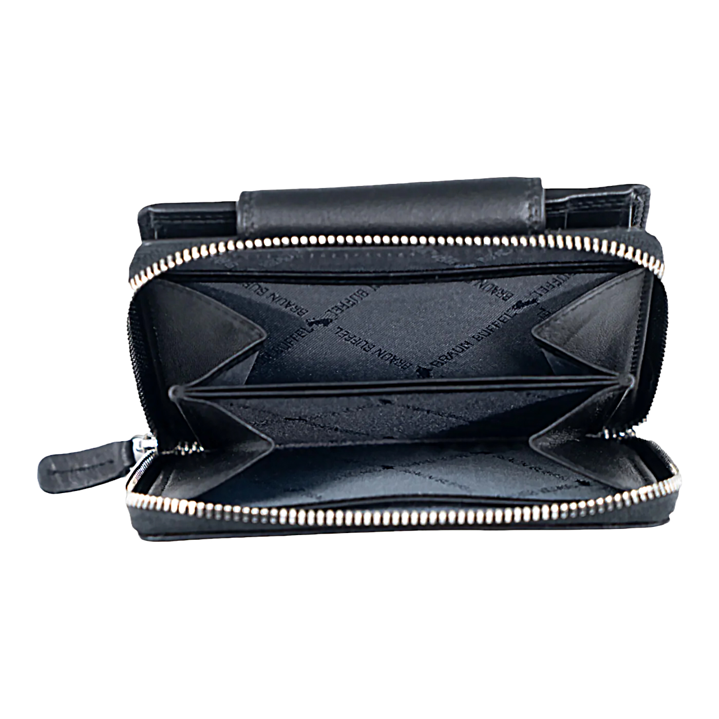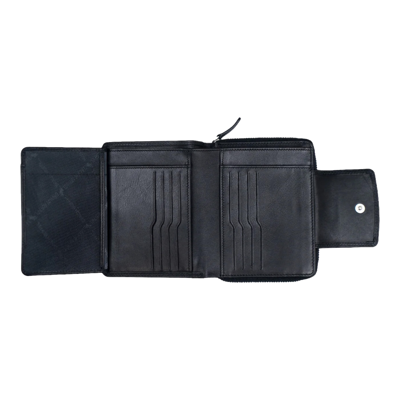 Zadní zipová část nabízí dvě oddělené kapsy na mince rozdělené středovou přepážkou a tři další přihrádky na účtenky či drobné nezbytnosti.