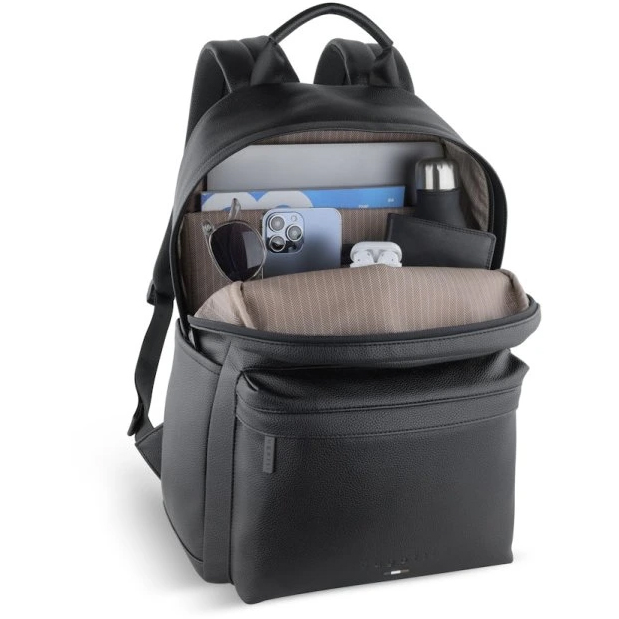 Vyrobeno z vysoce kvalitní umělé kůže s charakteristickou vlajkou Bugatti na vnějšku i uvnitř. Hnědá polyesterová podšívka dodává batohu elegantní vzhled a zároveň zajišťuje dlouhou životnost