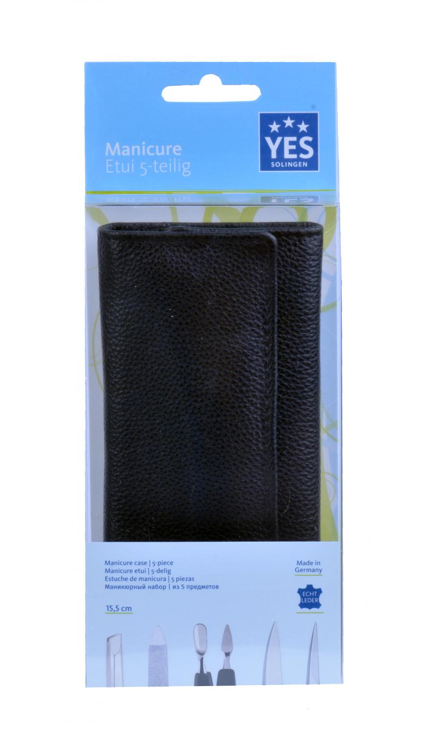 Kožená  manikúrní  5-ti dílná sada vyrobená v Německu pod značkou YES Solingen se vyznačuje vysokou kvalitou nástrojů, které jsou vyrobeny z kvalitní oceli a jsou přesně naostřeny.