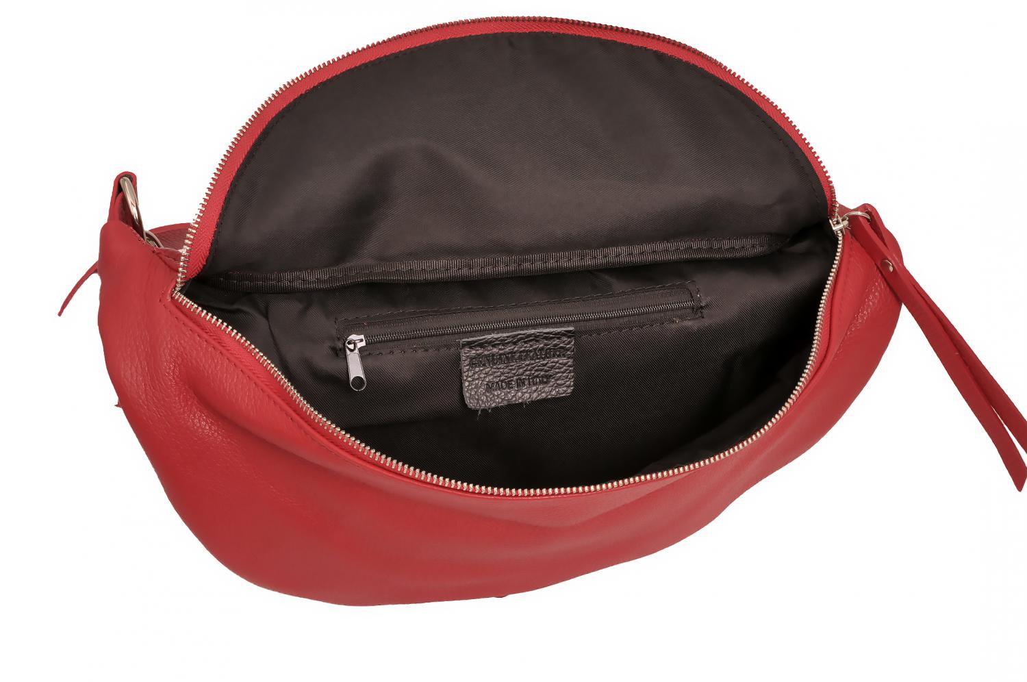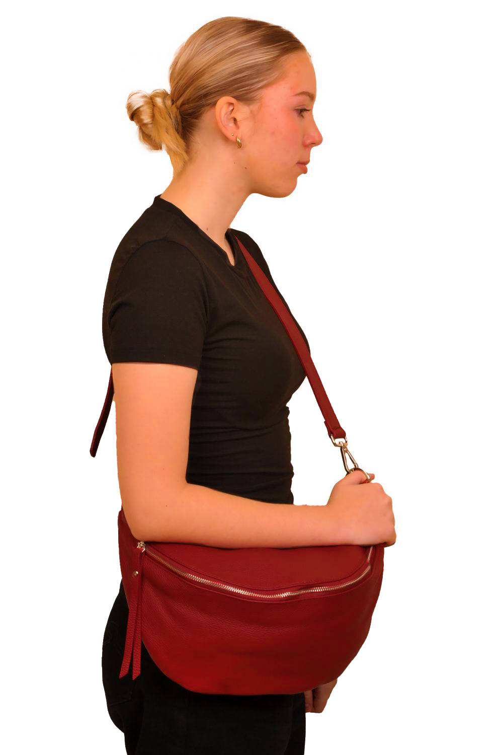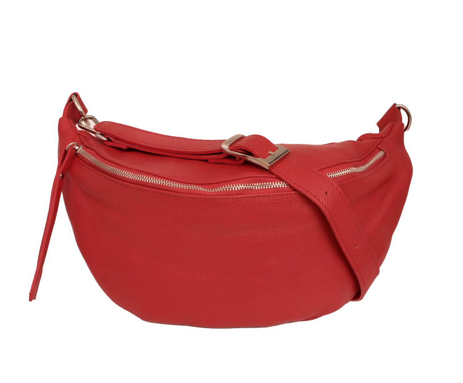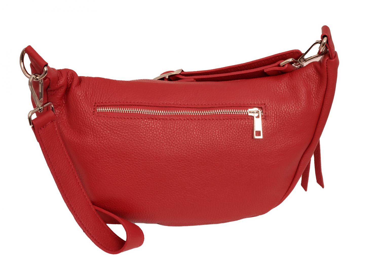 Středně velká kabelka ve stylu ledvinky vyrobená z kůže.