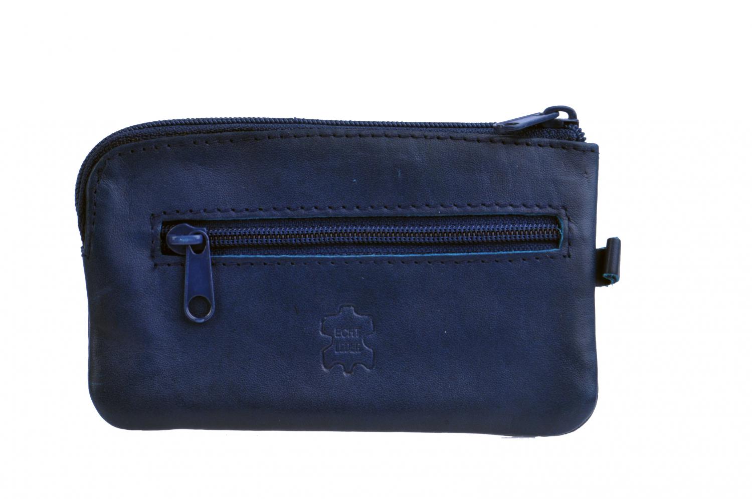 Dámská velká kožená klíčenka 1039-A tmavě modrá s kytičkou