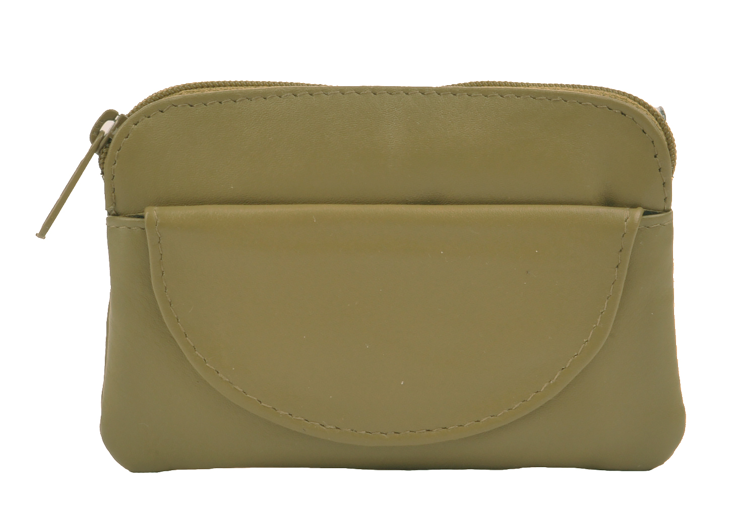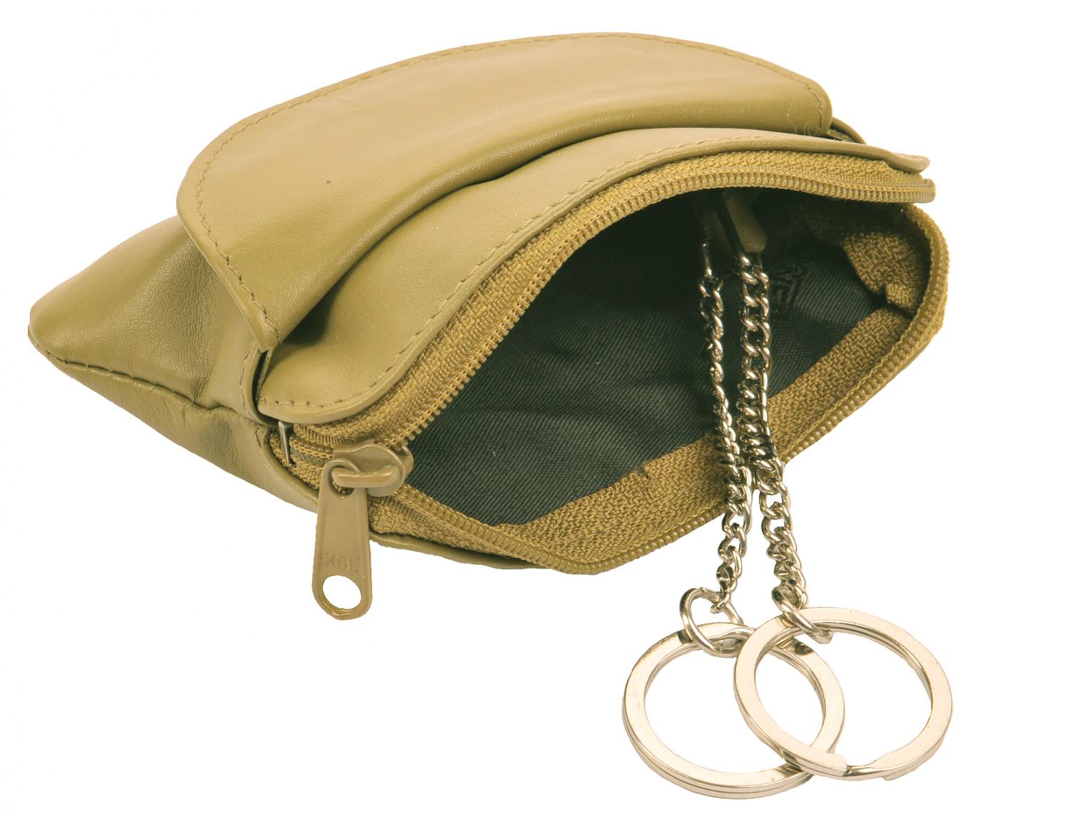 Kožená klíčenka se zipovou a klopnovou kapsičkou.