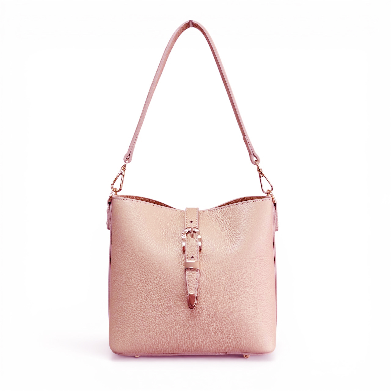 Dopřejte si kabelku, která podtrhne váš styl a dodá každému outfitu nádech elegance. Tento sofistikovaný model v jemném odstínu světle růžové se zlatými detaily je ideální volbou pro výjimečné okamžiky – od svateb až po večerní společenské události.