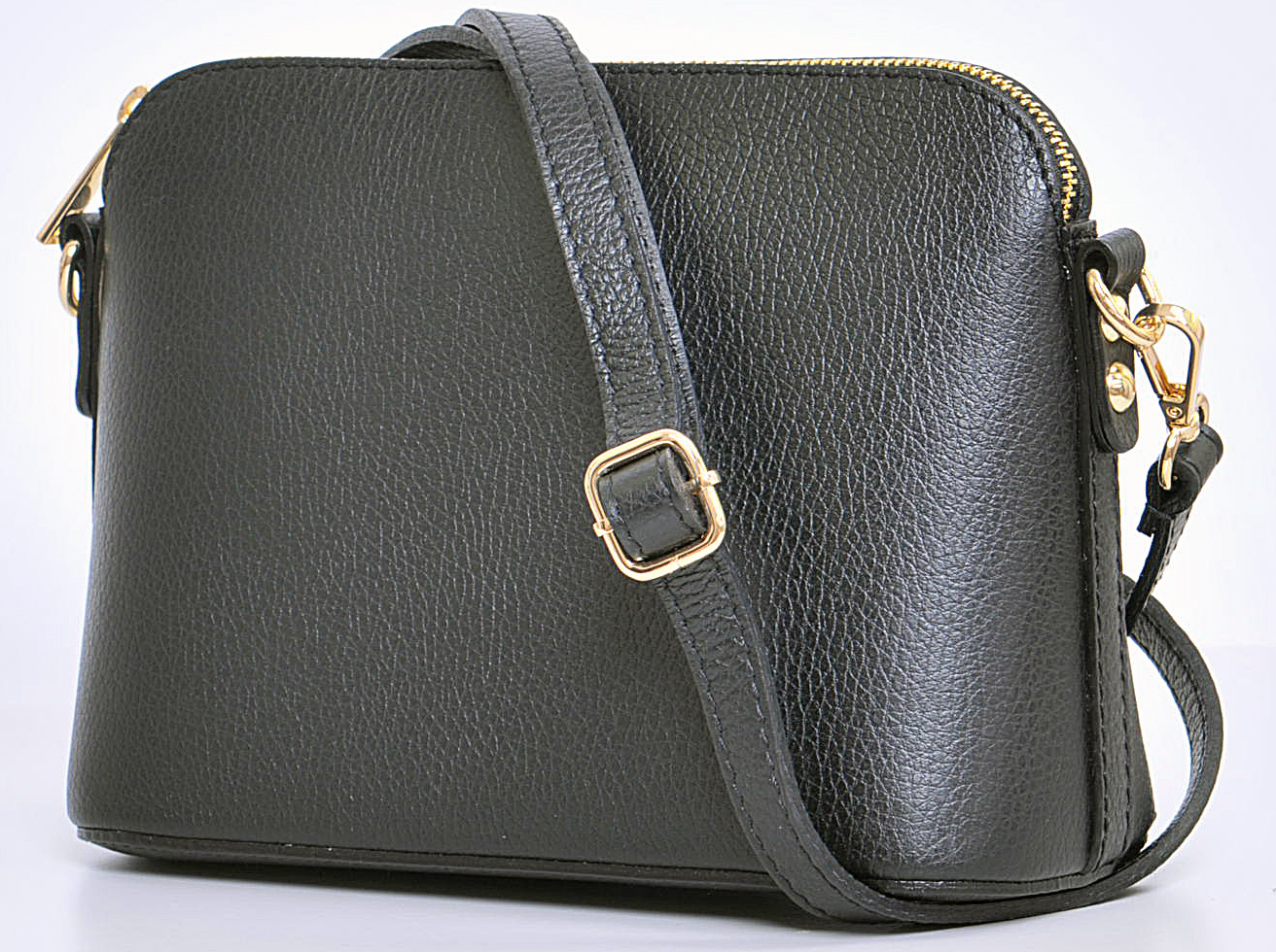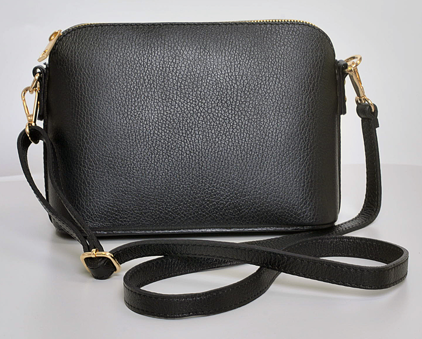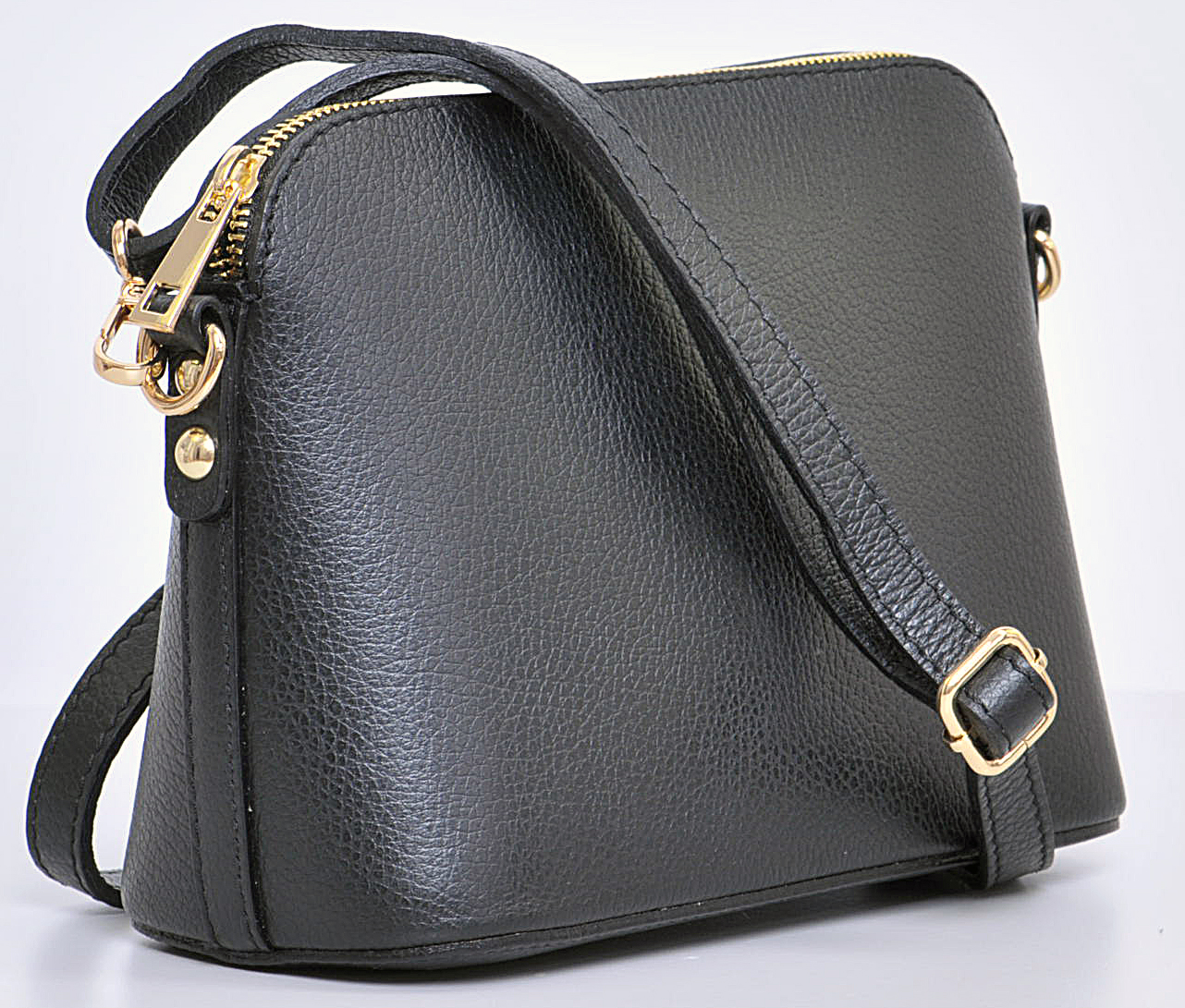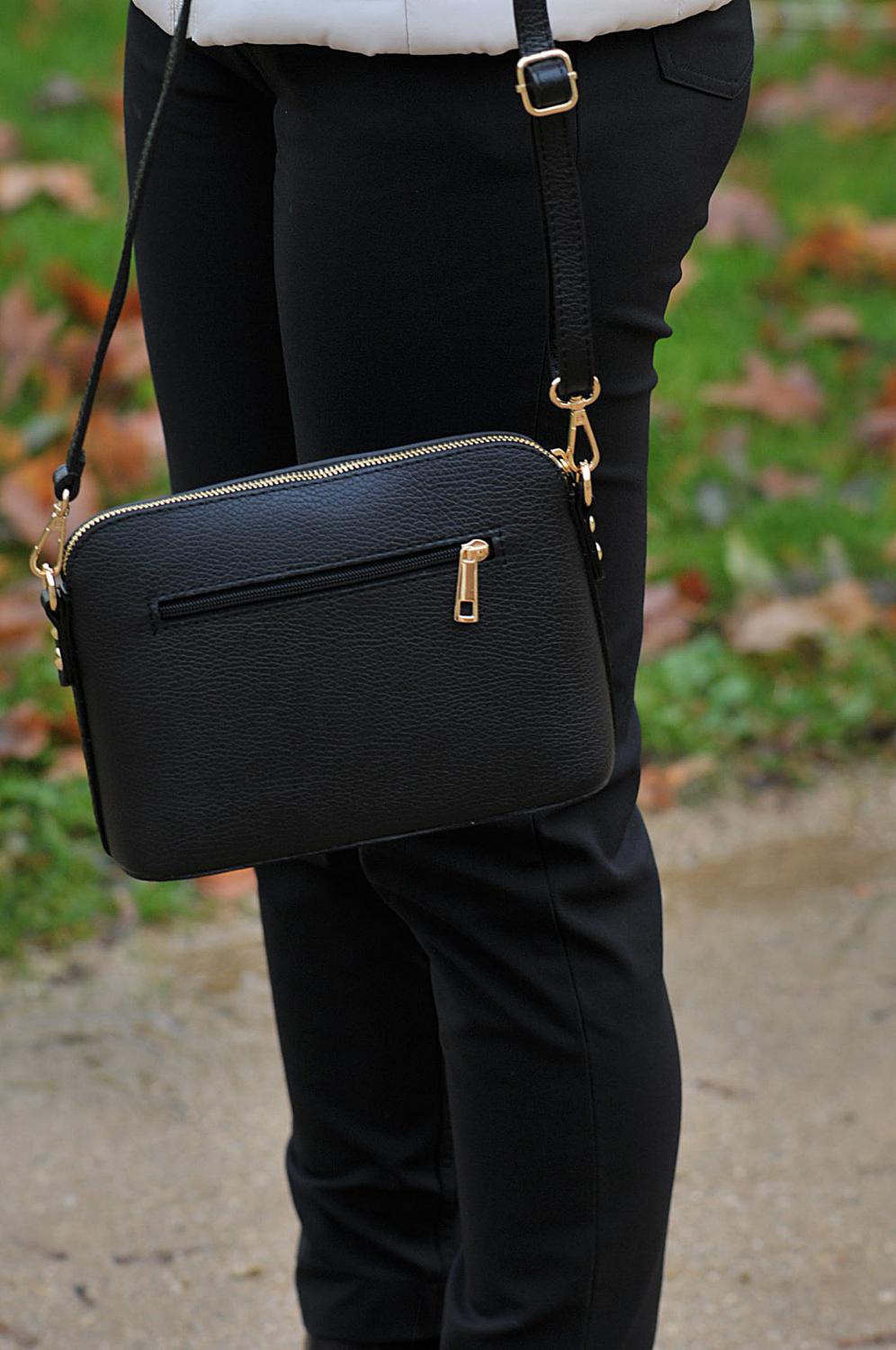 Menší kabelka značky MaxFly, je vyrobená z pevné kůže, která je odolná proti poškrábání. Výhodou kabelky je, že drží dobře tvar a že se nepřeklápí. Tato jednoduchá kabelka, která nepodléhá módě, se jistě stane Vaším dlouholetým společníkem a doplňkem jakéhokoliv outfitu.  Zlatý kovový zip korespondující s černou barvou kabelky dává kabelce ,,šmrnc" a eleganci. Kabelka je uvnitř jednoduše uspořádaná, má jednu malou zipovou kapsičku.  Délku popruhu můžete nastavit,  max. délka je 130 cm.