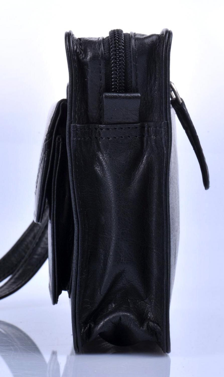 • Na přední straně taštičky je malá zipová kapsa a praktická kapsa s klopou, která je zajištěná suchým zipem