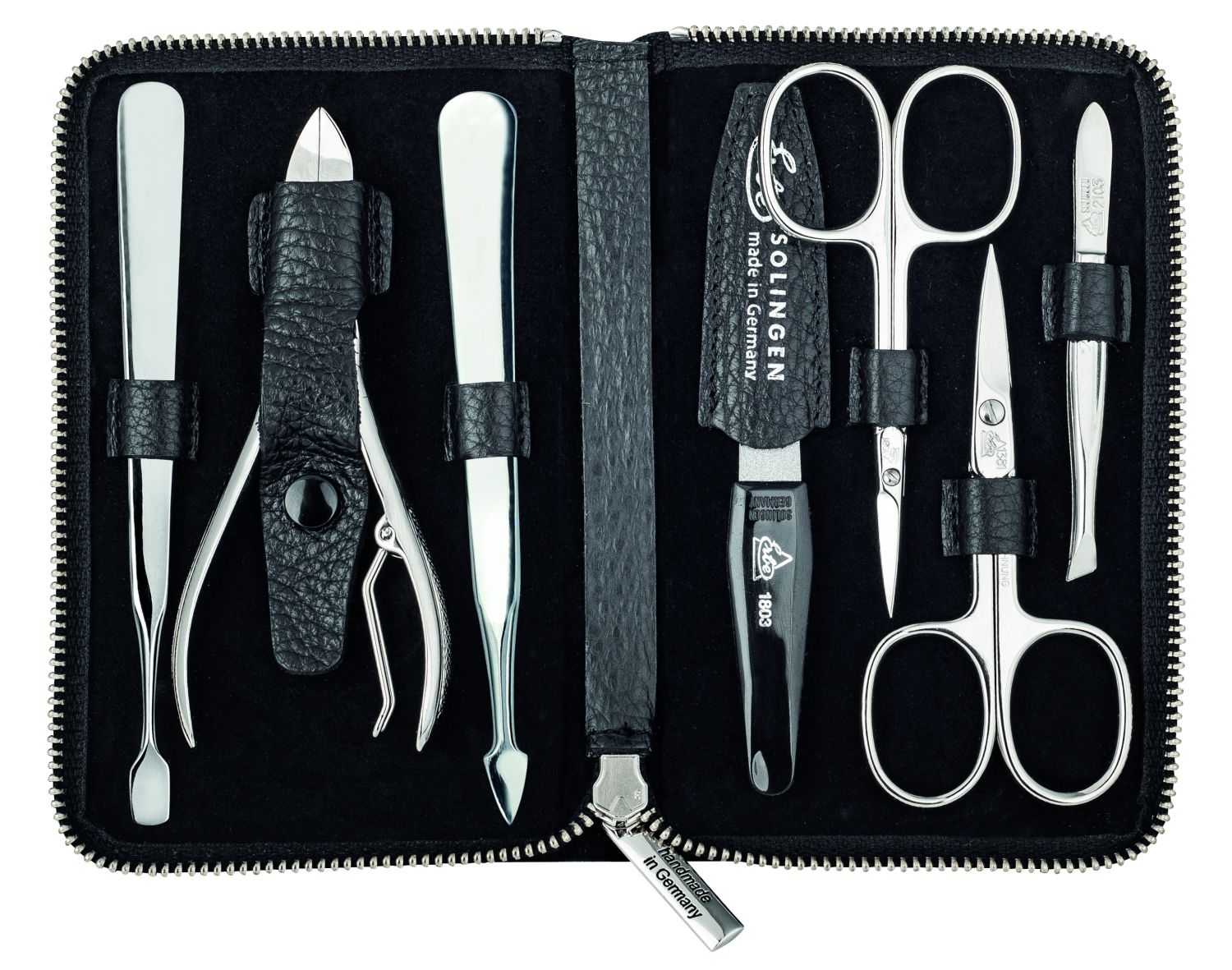 Prémiové manikúrní nástroje Made in Solingen, splňující i velmi náročné požadavky,  v kombinaci s nadčasovým elegantním designem koženého pouzdra, činí z této manikúry hodnotný dárek, praktický a zároveň krásný.